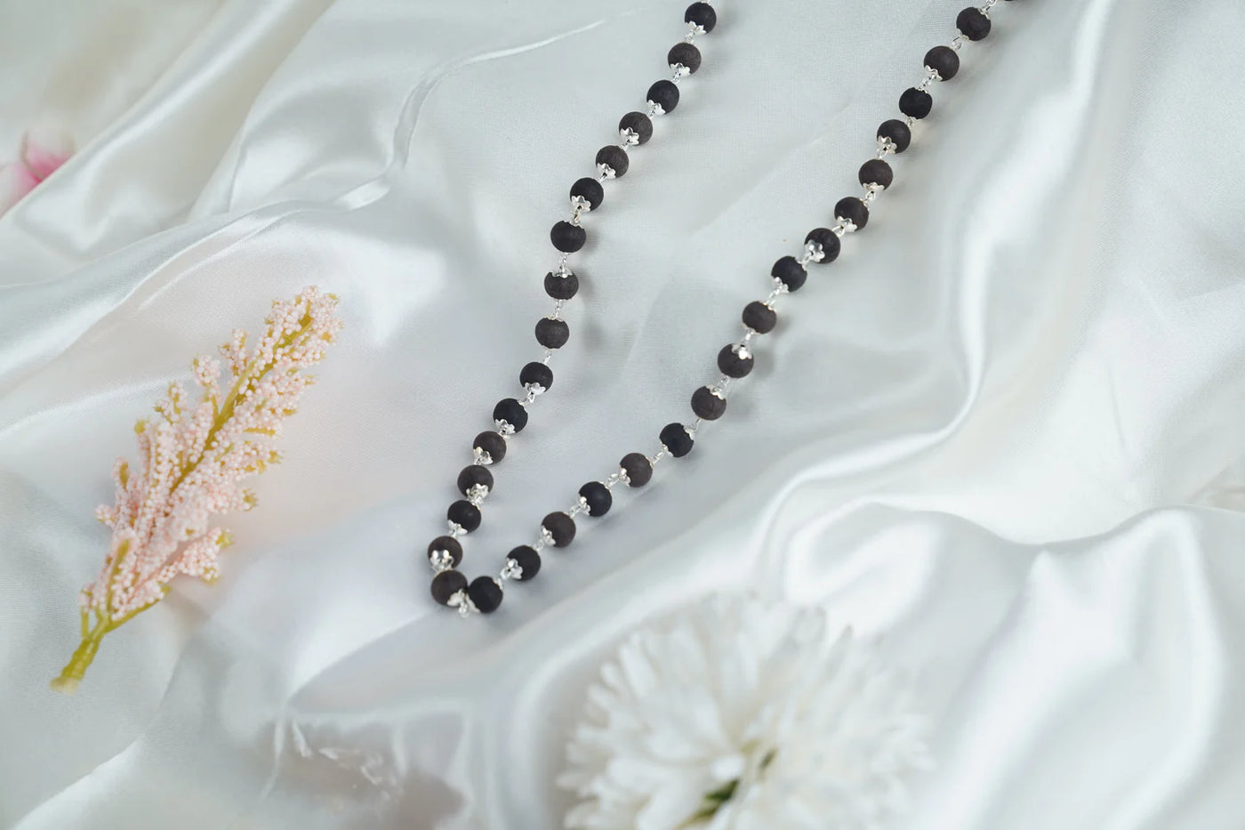Silver Plated Eternal Karungali Mala - Natural Ebony Wood (Govt. Certified)